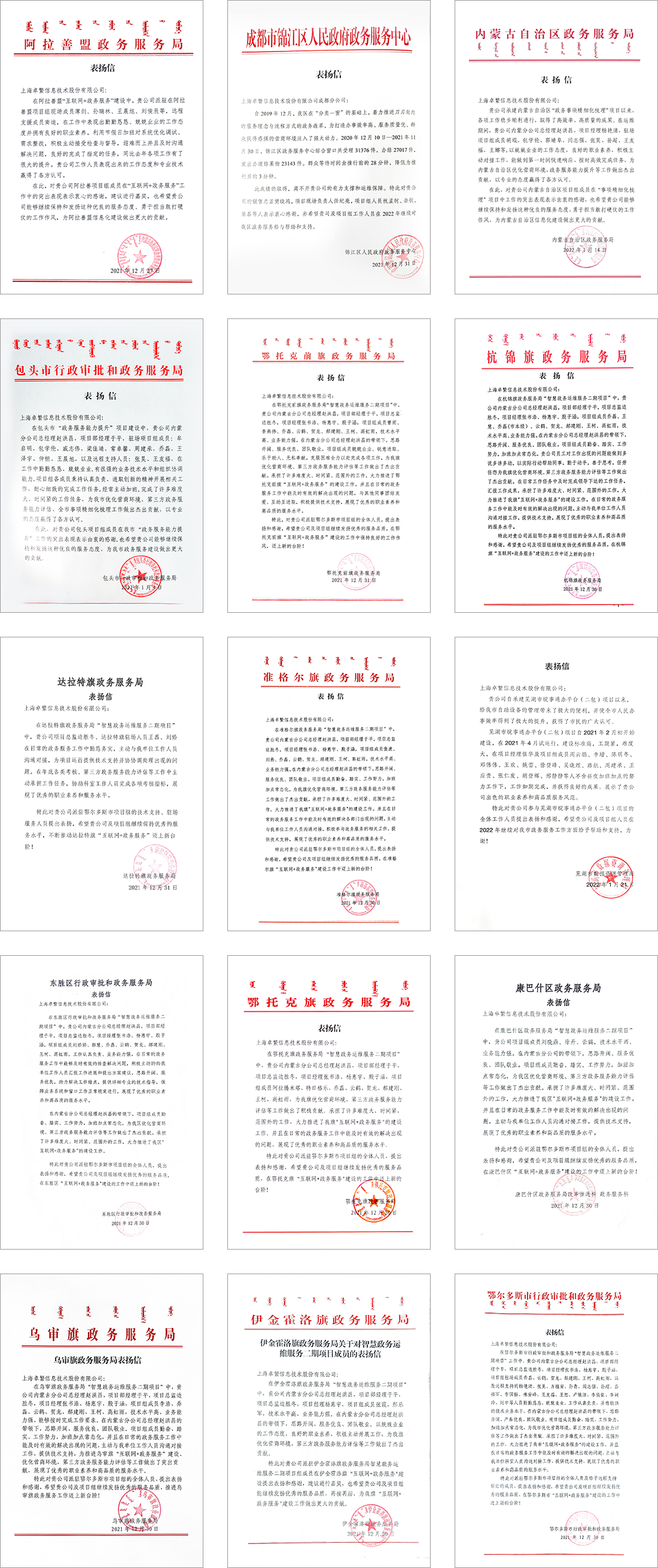细心、贴心、周到,专业、奉献、服务,是信件中出现的最多的字眼。业务不同,需求不同,评价一致。阿拉善盟“互联网+政务服务”建设,包头市“政务服务能力提升”